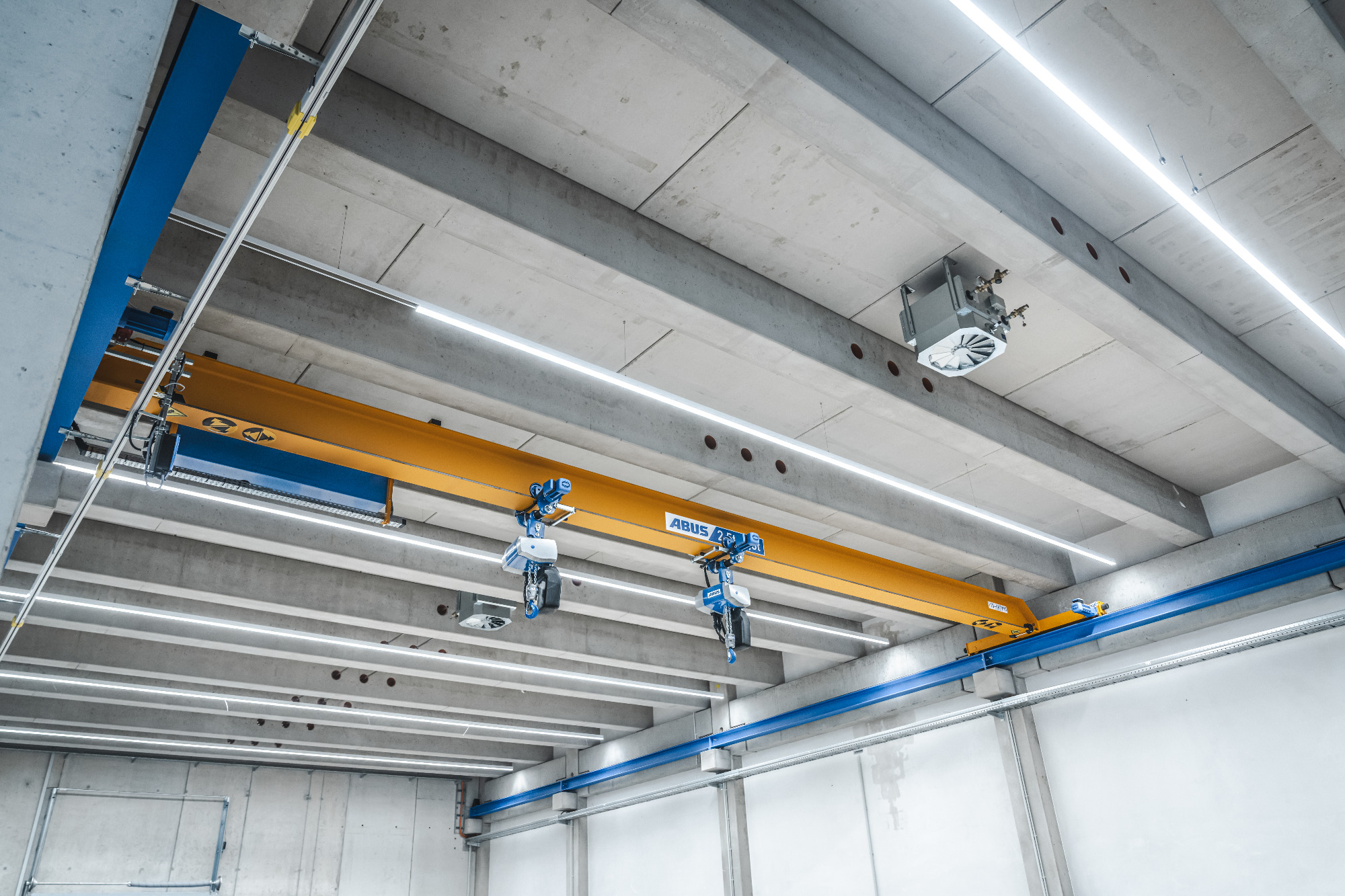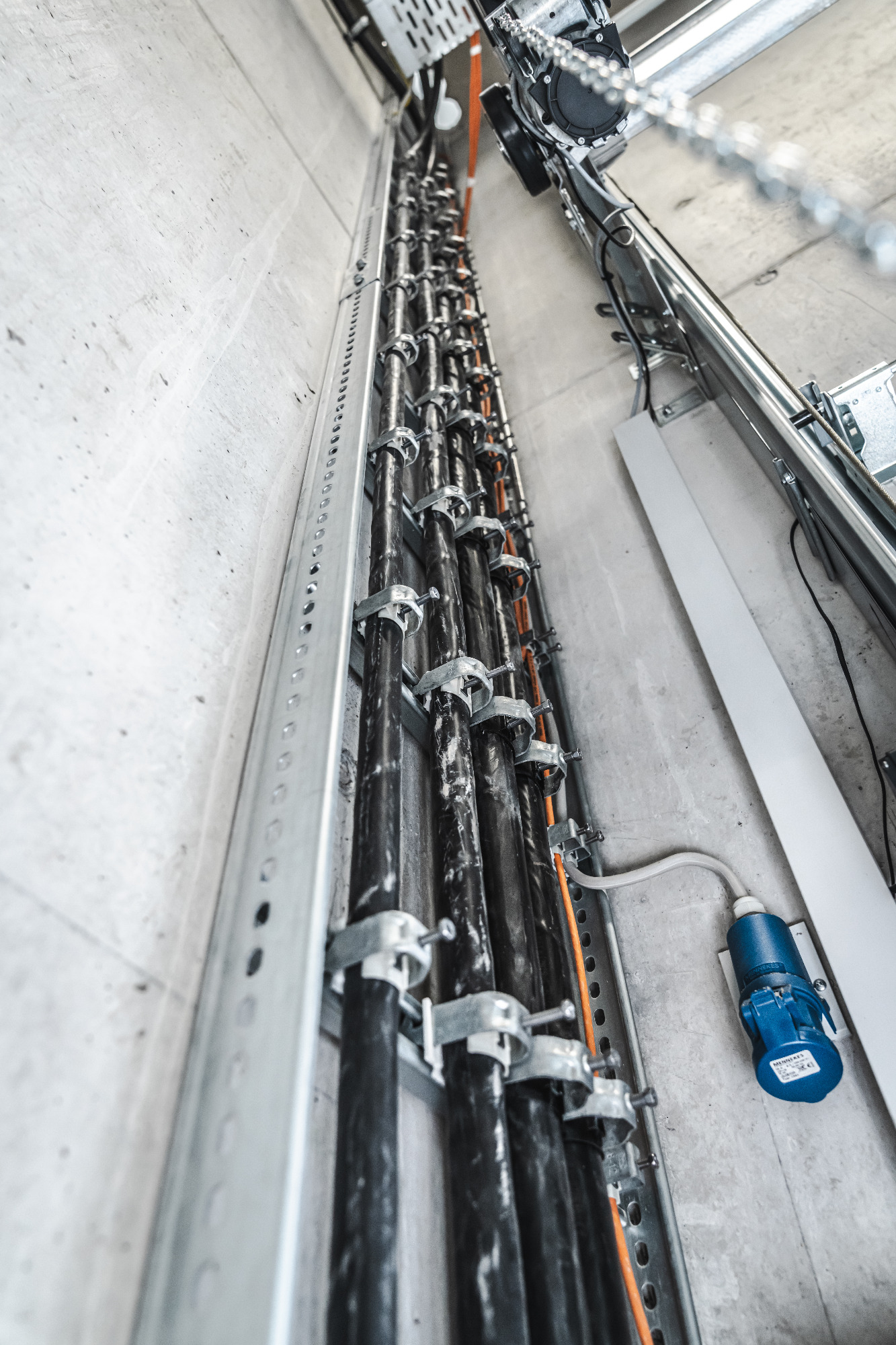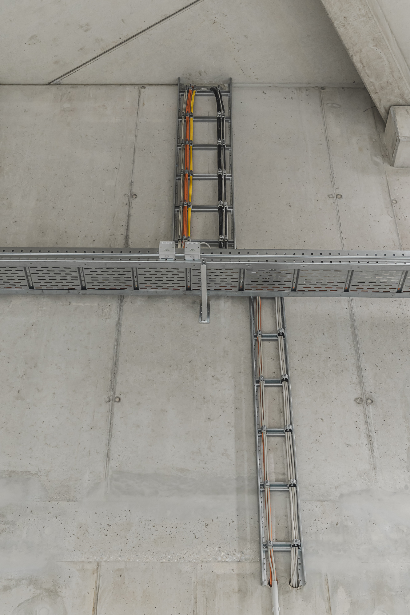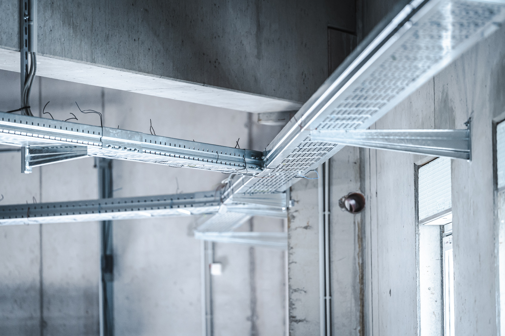 In der Produktionshalle sowie in mehreren Bürobereichen montierten wir robuste Weitspanntrassen, um eine sichere, übersichtliche und erweiterbare Leitungsführung zu gewährleisten.