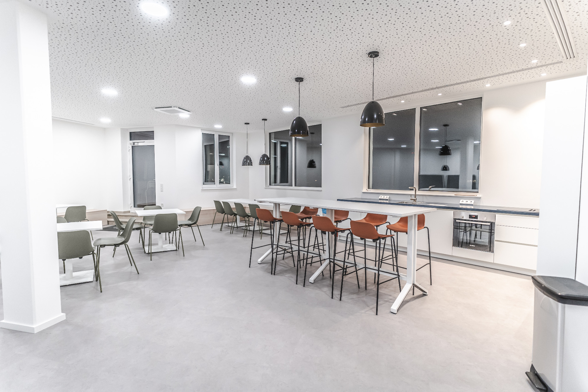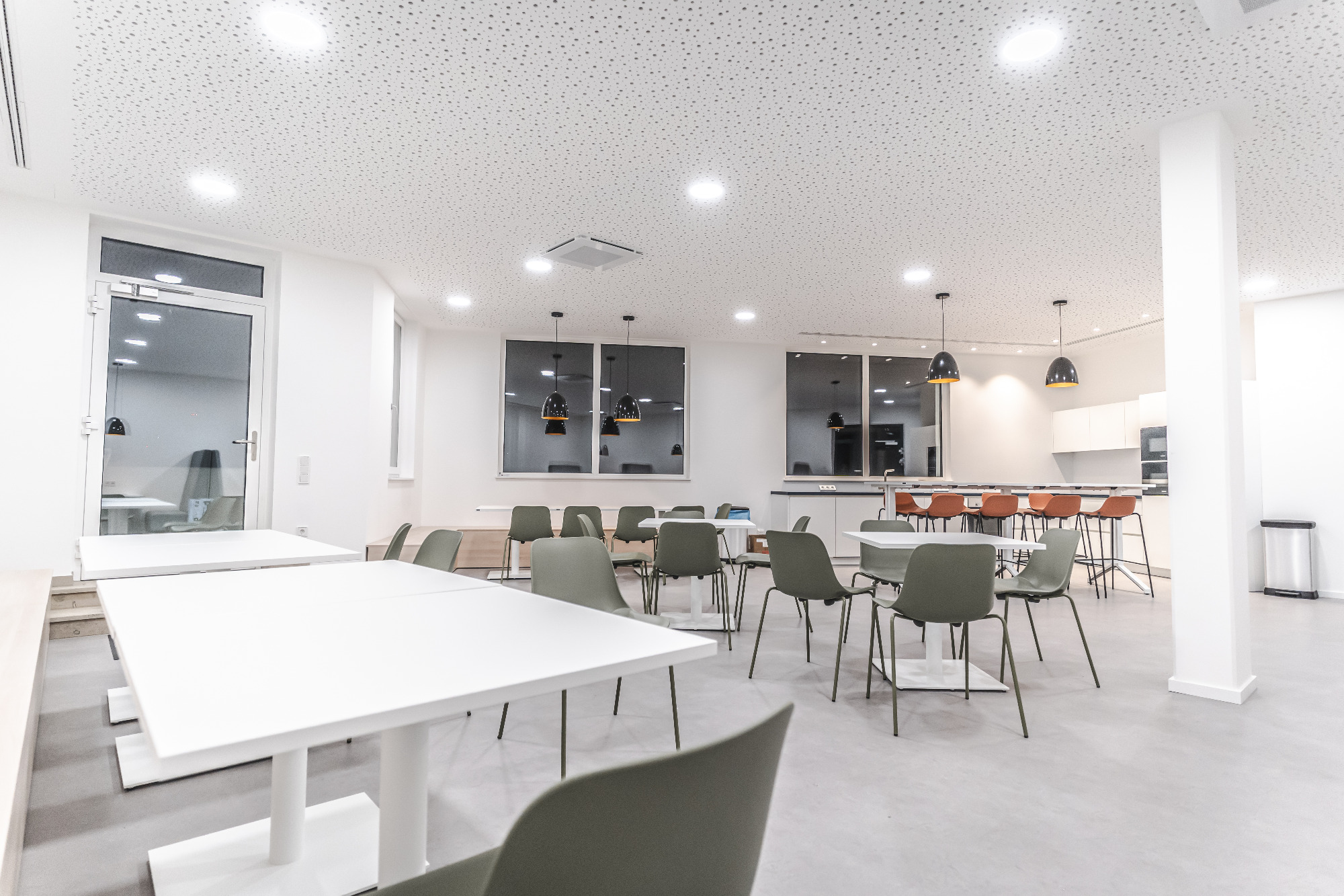 - Kantine & Vorräume: hochwertige SLV-Leuchten für ein warmes, einladendes Ambiente